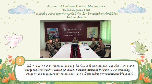 Post Views: 131 เมื่อวันที่ 11 มีนาคม 2567 เวลา 08.30 น. ร่วมฟังการบรรยาย Clinic Police ITA 2024 ครั