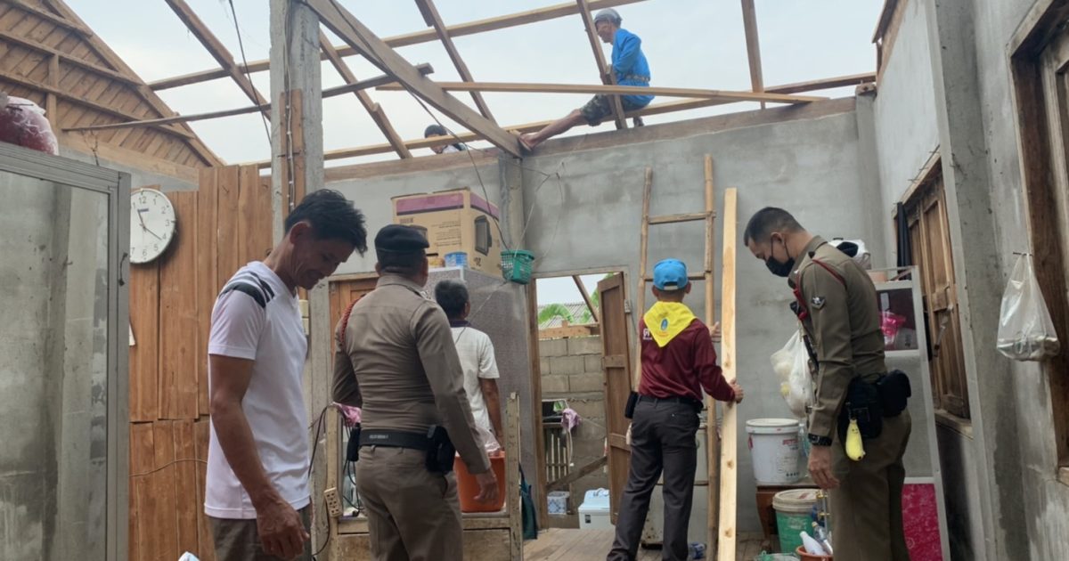 วันที่ 19 มีนาคม 2566 เวลา 15.00 น. พ.ต.อ.สุรชัย จันทรมณี ผกก.สภ.ลอง มอบหมายให้ ร.ต.อ.พชรดนัย ขันทอง รอง สวป.สภ.ลอง และเจ้าหน้าที่ตำรวจจิตอาสาจำนวน 5 นาย ร่วมกับเทศบาลแม่ลานนา และผู้นำหมู่บ้านร่วมกิจกรรมจิตอาสาภัยพิบัติ โดยได้ร่วมกันออกให้ความช่วยเหลือประชาชนที่ได้รับผลกระทบจากเหตุวาตภัยในพื้นที่ตำบล ห้วยอ้อ อำเภอลอง จังหวัดแพร่