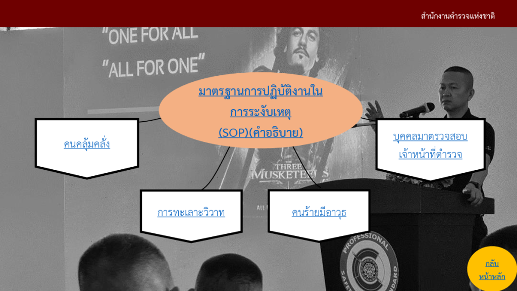 มาตรฐานการปฏิบัติงานสำหรับเจ้าหน้าที่ตำรวจ (Standard Operating Procedure:SOP) ขั้นตอนการปฏิบัติงานที่ถูกกำหนดขึ้นภายในองค์กร